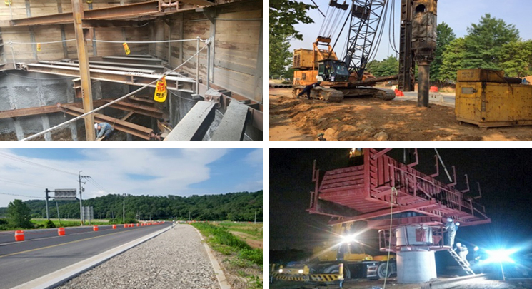 | 03.일반토목공사 | - 철근콘크리트공사 - 교량공사 - 하천공사 - 단지조성공사 - 도로공사 - 환경시설물 |