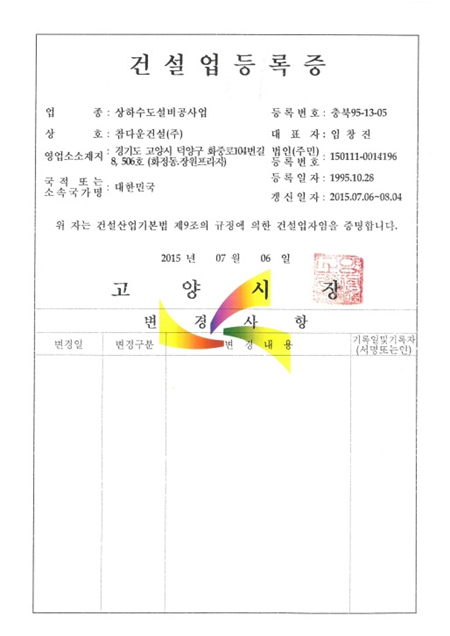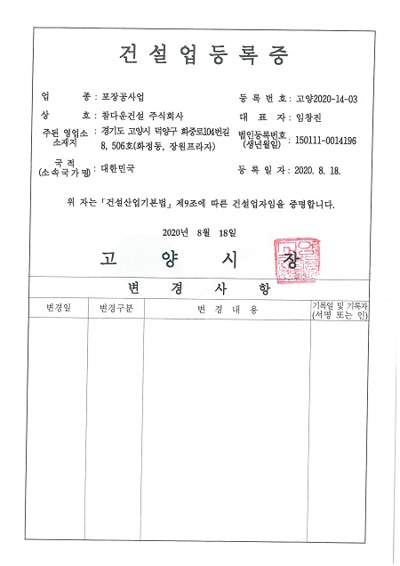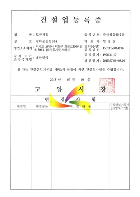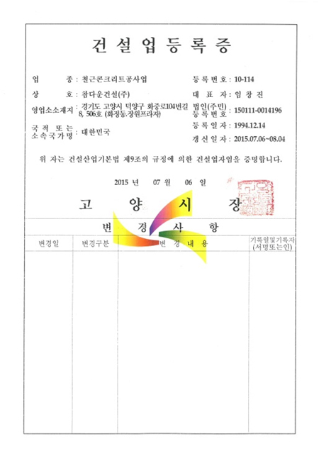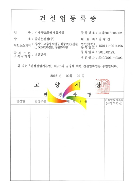 | 영업소재지 | 경기도 고양시 덕양구 화중로 104번길 8, 506호(화정동,장원프라자) | |